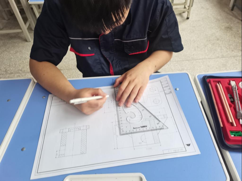 比赛现场,气氛紧张而热烈。选手们依据给定的图纸及设计要求,从线条的勾勒到尺寸的标注,每一个细节都处理得一丝不苟,力求将脑海中的机械蓝图完美复刻。通过竞赛提高了学生专业技能,激发了学生对机械制图课程的学习兴趣,提高了学生对机械制图理论知识的掌握程度和实际绘图能力,培养了学生的空间想象能力和严谨的绘图态度。
