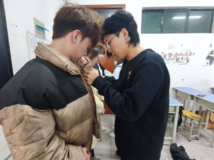 仪式在激昂雄壮的《中华人民共和国国歌》中拉开序幕。全体人员肃然起立,高唱国歌,嘹亮的歌声回荡在教室的每一个角落,传递着青年学子对党和国家的无限热爱与赤诚之心。